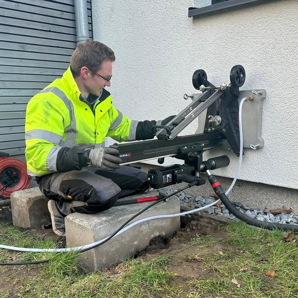 Mit unseren gewerblichen Profi-Maschinen bohren wir bis zu 500 mm nass oder trocken mit Absaugung. Auch eine Tiefe von bis zu 1,5 Metern ist kein Problem.